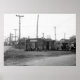 Boa foto do velho posto de gasolina com bombas de gás e carros antigos. Foto de 1925 da National Photo Company.