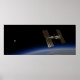Uma visão detalhada da Estação Espacial Internacional (ISS), a maior conquista da humanidade na cooperação internacional e na exploração espacial. Esse magnífico laboratório orbital mostra seus conjuntos de painéis solares expansíveis que alimentam os sistemas da estação, múltiplos módulos pressurizados que servem de moradia e de trabalho para os astronautas, e a complexa estrutura de travas que mantém tudo unido. Orbitando a Terra a aproximadamente 250 milhas de altitude e viajando a 17.500 mph, o ISS completa uma órbita a cada 90 minutos. Essa maravilha de engenharia tem sido continuamente ocupada desde novembro de 2000, servindo como plataforma para pesquisa científica, demonstrações de tecnologia e colaboração internacional entre agências espaciais de todo o mundo, provando que a humanidade pode alcançar coisas extraordinárias quando trabalha em conjunto além do nosso planeta.