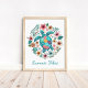 Traga as vibrações pacíficas do oceano para o seu espaço com esta linda impressão artística de tartaruga marinha boho. Rodeada por delicadas flores tropicais e ilustrada em tons de turquesa calmantes, este design evoca relaxamento e harmonia com a natureza. Personalize o texto com seu nome, citação ou localização para torná-lo verdadeiramente seu. Perfeito para decoração costeira, casas de praia, berçários ou como um presente atencioso para amantes do oceano.