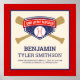Pôster de anúncio de nascimento para quarto de bebê com tipografia moderna, tacos cruzados e uma bola de beisebol. Adicione todos os seus detalhes encantadores neste modelo fácil de usar para criar seu próprio pôster de estatísticas de nascimento único.