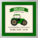 Pôster de anúncio de nascimento para quarto de bebê com tipografia moderna e trator verde fofo. Adicione todos os seus detalhes adoráveis neste modelo fácil de usar para criar seu próprio pôster de estatísticas de nascimento único.
