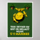 Este poster da Primeira Guerra Mundial apresenta o Emblema do Corpo Marinho; a Águia, o Globo e a Âncora. Diz: "Este dispositivo sobre chapéu ou capacete significa fuzileiros navais dos EUA". Celebrar Corpos Marinhos e História WW1 com este poster de guerra vintage restaurado digitalmente da "The War Is Hell Store". Quer mais produtos militares e históricos? Check-out