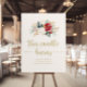 Este sinal de vela floral dourado clássico é perfeito para um casamento rústico. O design apresenta flores e bagas em branco aquarela, burgundy e dourado com folhagem verde dispostas em buquês elegantes.