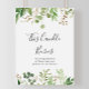 Este sinal de velas queima de eucalipto simples floral é perfeito para um casamento de folhagens. O design apresenta belas folhas verdes de eucalipto pintadas à mão artisticamente dispostas em formas geométricas, inspirando a beleza natural.