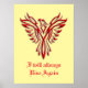 Esta poster mostra uma ascensão vermelha e estilizada de fênix das cinzas. Ele tem um olhar emboscado para o máximo de apelação em um fundo de ouro. O texto diz "Eu sempre vou subir de novo", mas você pode mudá-lo se quiser.