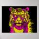 Tigre de Dayglo estilo poster em amarelo e roxo.