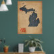 Pôster Estilo de Jeans Denim do Mapa do Michigan