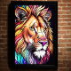 Estilo De Vidro Manchado Por Aquarela Lion. A proporção é 2:3 Foi projetada para ser impressa como 24"x36"