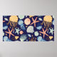 Poster Estilo sem costura, bonito, com águas-vivas, conch