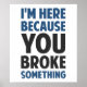 Excelente para especialistas em suporte técnico e reparadores e mulheres de todo o tipo para lembrar a todos exatamente por que apareceram. É porque você quebrou alguma coisa.