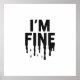 Um poderoso e irônico design gráfico com a frase comum "Eu estou bem" em uma fonte angustiada e achatada. A palavra "FINE" é mostrada derretendo ou pingando, simbolizando que o sentimento é instável, se desfaz, ou uma mentira usada para mascarar a dor, a ansiedade ou a profunda tristeza. Perfeito para consciência mental, honestidade emocional e expressão crua.