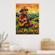 Esta vibrante trabalho de arte apresenta um urso vestido de bombeiro, cheio de capacete e óculos de sol, tocando um violão acústico enquanto sentado entre flores silvestres num morro de capim, com vista para um vale cênico. Um pote de mel fica perto. O sol se põe no fundo, lançando um ouro quente brilhando sobre as colinas verdes rolantes e árvores espalhadas. A pintura usa pinceladas grossas, texturizadas, dando uma sensação caprichosa e entusiasmante, com "Love My Honey" escrito abaixo.