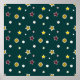 Padrão elegante de Natal sem costura, estrelas coloridas e flocos de neve em fundo verde escuro.
