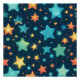 Estrelas brancas amarelas, vermelhas e azuis brilhantes em design de padrão de fundo azul.