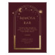 O Bar Celestial Vermelho Dourado Mimosa Sun Moon Stars Astronomy Cósmic Cósmic Galaxy Event Poster apresenta um sol dourado, lua e estrelas em um fundo cor-de-rosa. Dentro é o seu texto personalizado. Projetado por ©2024 Evco Studio www.zazzle.com/store/evcostudio