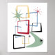 Adicione essa mistura de diversão e cor à sua parede com este fabuloso meio século da era atômica moderna! Este design apresenta quadrados abstrato, estereótipos e um bumerangue nas cores vermelho, verde, azul, amarelo e preto...tão engraçado!