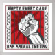 Um punho coloca os bares de gaiola em uma mensagem para proibir testes em animais, esvaziar cada gaiola! Imagens © Graphics Factory.com