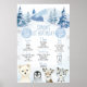 Primeiro aniversario Marinho do Ártico Azul Milestone Poster poster Sueco de inverno um primeiro aniversario marco de um dia com quatro animais árticos bonitos, flocos de neve e uma paisagem azul de inverno. O conselho de marco de aniversário do inverno deste rapaz é certo que vai estabelecer a cena para a primeira festa de aniversário de um rapaz e é um excelente.