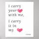 Eu carregar seu coração comigo, eu o carregar no meu coração. Uma citação adorável de EE. Cummings. Presente perfeito para sua pessoa especial <3