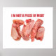 "Não sou um pedaço de carne", design nos convidando a refletir sobre a natureza irônica de como algumas pessoas veem e tratam outras apenas como objetos de desejo. Esta imagem poderosa desafia as normas sociais e encoraja uma introspecção mais profunda sobre o valor que colocamos nas conexões humanas além da física. A justaposição da carne crua com a poderosa mensagem cria uma composição provocadora que exige atenção e provoca conversas sobre as complexidades das relações humanas.