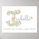 Lindo pôster com monograma da letra I, arte do nome, perfeito para o quarto ou sala de brincar de uma menina em tons de cinza, branco, amarelo, rosa e roxo. Personalize com o nome da sua filha que comece com J e o significado do nome para um presente único e verdadeiramente personalizado para o quarto ou berçário da sua filha, este exemplo é para o nome I Isabella Devotada a Deus. Bonita, enérgica e talentosa. Impressão de pôster fofa ideal para presente de um novo bebê, batizado ou chá de bebê. © Desenho e arte gráfica únicos de monograma da letra I com corações e flores por Sarah Trett. www.sarahtrett.com para www.mylittleeden.com