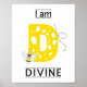 Sinal de afirmação positiva para crianças "Eu sou divino" - citação do amor próprio.