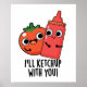 Eu vou me vestir com você Comida Engraçado Pun mostra um tomate fofo dizendo a seu amigo do ketchup "Eu vou te alcançar". Um presente perfeito para a família e amigos que adoram trocadilhos fofos.