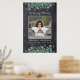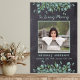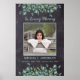 Cartaz de Funeral de Memória de Simpatia de Eucalipto Moderno. Este elegante cartaz memorial apresenta um design de folhagem de eucalipto rústico em ardósia de quadro-negro. "Em Memória Amorosa" Personalize este sinal de funeral memorial com a foto, nome e datas de seu ente querido. Este cartaz memorial será um precioso souvenir, para serviços funerários e celebração da vida. DIREITOS AUTORAIS © 2020 Judy Burrows, Black Dog Art - Todos os Direitos Reservados. Cartaz de Funeral de Memória Amorosa de Eucalipto Rústico
