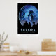 Esta poster da NASA Visions of the Future series imagina a exploração futura da lua gelada Europa de Júpiter. Sob a sua superfície, acredita-se que Europa esconda um vasto oceano e as potenciais condições para uma vida simples. Veja a série de cheios para obter mais imagens de viagem de espaço fictício. Crédito NASA/JPL-Caltech. Use as ferramentas de design para adicionar texto personalizado ou personalizar a imagem.