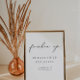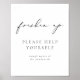 Este modelo de placa de sanita "freshen up" apresenta uma fonte elegante de script e um layout moderno minimalista. Altere facilmente as cores da fonte e a cor do plano de fundo para corresponder ao estilo do evento. A elegante combinação de cores preto e branco faz dela a adição perfeita a qualquer evento. Use este poster para sua recepção de casamento, chá de panela, chá de casais, etc.