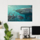 Poster Excelente de tubarão branco e paisagem submarina p