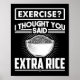 Esta design de Exposição de Trabalho lê exercício? pensei que você disse arroz extra. Perfeito para um amante de ginástica e fã de malhação que ama construção de carroceria e levantamento de pesos enquanto desfruta de um excerto engraçado e motivacional