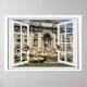 Linda vista da fonte Trevi, falsa cena da janela, para uma parede de escritório sem janelas. Poster de cenas de ilusão óptica divertida e realista para um escritório ou uma parede de estudo.
