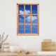 Esta janela de madeira 'falsa' arma um céu azul de verão, com nuvens brancas e peludas. É só o que olhar e sonhar. Cria um falso efeito de janela na sua parede para que você possa ter um céu azul o ano todo. Muito tranquilo e relaxante, e uma maneira divertida de levantar o humor de uma sala sem graça.