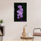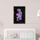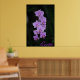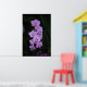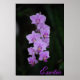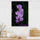 Este lindo caule de orquídeas lilás e roxas parece flutuar no espaço negro de fundo. Bordada com a cor coordenada e a palavra Exótica. Poster fantástico, belo ponto focal em qualquer sala.