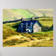 Uma bonito aquarela de uma fazenda de pedra galesa que se instala nas montanhas do País de Gales, Reino Unido.