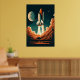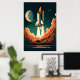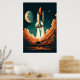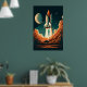 Isso representa um poderoso foguete espacial à medida que ele sai do painel de lançamento e se dirige para a infinita extensão do espaço externo. O foguete é rodeado por nuvens de fumaça e chamas, somando ao drama e ao entusiasmo da cena. O poster certamente encantará qualquer um com interesse na viagem e exploração do espaço.