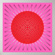 Médio do século Moderno abstrato de explosão solar com um efeito de declive e gradiente - vermelho chinês profundo num fundo cor-de-rosa fucsia, acentuado com prata