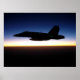 Um F/A-18 Hornet prowls no céu noturno à medida que o sol nasce.