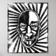 Impressão de estêncil vintage preto e branco original de akamundo. Relembra temas da prisão, hipnose, personagens de quadrinhos e grafite.