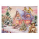 Esta cena apresenta uma bela fada rodeada por criaturas da floresta, incluindo um dragão e pegasus, retratada em uma terra maravilhosa mágica de neves do inverno. A design de aquarela adiciona capricho, magia, e imaginação, fazer-a perfeita para um tema de fada de Natal.