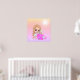 Fada de fada bonita com flor de margarida e monograma em fundo rosado. Ideal para creches, quarto de crianças e muito mais.