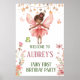 Primeiro aniversário bonito (ou qualquer data de nascimento) poster de fada branca com luzes estelares e flores pastéis, acompanhado de um sapo giro, borboleta e libélula. Altere o texto para qualquer evento ou ocasião. Esta imagem será facilmente convertida para os tamanhos de 20 x 30 ou 24 x 36 polegadas
