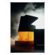 Immerse yourself in this fusion of geometry and light. A dark structure emanates a warm glow, enveloped in mysterious smoke. A modern work of art that captivates and intrigues, creating an atmosphere of unforgettable visual impact.