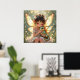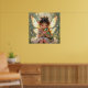 A cute child's wall art featuring a sweet little fairy girl holding her baby dragon. Cute anime chibi illustration.