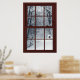 Window with a View Faux Poster Print - Fresh Snowfall Scene. Enhance the decor of any room with this picturesque poster. The artwork creates the illusion of having a 12 pane cherry wood window to look out of. The fresh snowfall makes you feel as though you are looking out at a picturesque winter scene. The original artwork is 36"W x 24"H which is the average poster size and was created at high resolution (300 dpi) so re-sizing it is not a problem. The background scene of this poster is a lot wider so you can slide it left or right to feature a different view by clicking on "edit design". See other beautiful scenes in my store. Feel free to contact me if you have any questions.