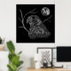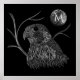 Trabalho de arte preto e branco de um falcão peregrino com lua de cheio e galhos de árvores. Use o modelo de texto para adicionar uma inicial ou um monograma à lua. ♡ Idyllfire