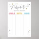 Esse Poster de ouro, cinza e Chá de fraldas branco (Sign) completará perfeitamente sua festa reveladora de gênero. Esta será uma atividade moderna e divertida para um simpático partido moderno e neutro em termos de gênero, chá de fraldas. Completa é com nossos meninos / meninas / um de cada adesivo.