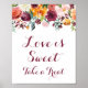 Use a nossa placa floral "Love is Sweet - Take a Tratat" com um sinal de laranja, burgundy, creme e flores cor-de-rosa para que seus hóspedes saibam fazer um doce trato ou favor. O texto é perfeitamente personalizável. Use a ferramenta "Personalizar este modelo" do Zazzle para inserir suas próprias informações. Se você precisar alterar o posicionamento das caixas de texto, a cor ou o tamanho da fonte, basta clicar no botão "Clique para personalizar mais" para alterar essas coisas. Certifique-se de verificar nossa grande seleção de itens coordenadores navegando na coleção Fall Flower Wedding!