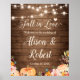 Crie o seu próprio Sinal de Casamento com este modelo "Fall in Love String Lights Rustic Welcome Poster" para combinar as cores e o estilo do seu casamento. Este design de alta qualidade é fácil de personalizar para ser exclusivamente seu!